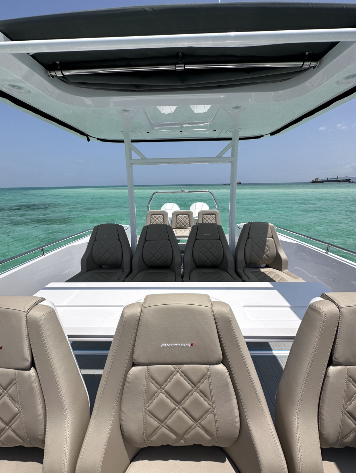 2023年5月2日に新西宮マリーナから、小浜島までオーナー自ら1人で回航し、10日間かけて国内第一号艇となるAXOPAR37 STを八重山諸島の海に進水させる。